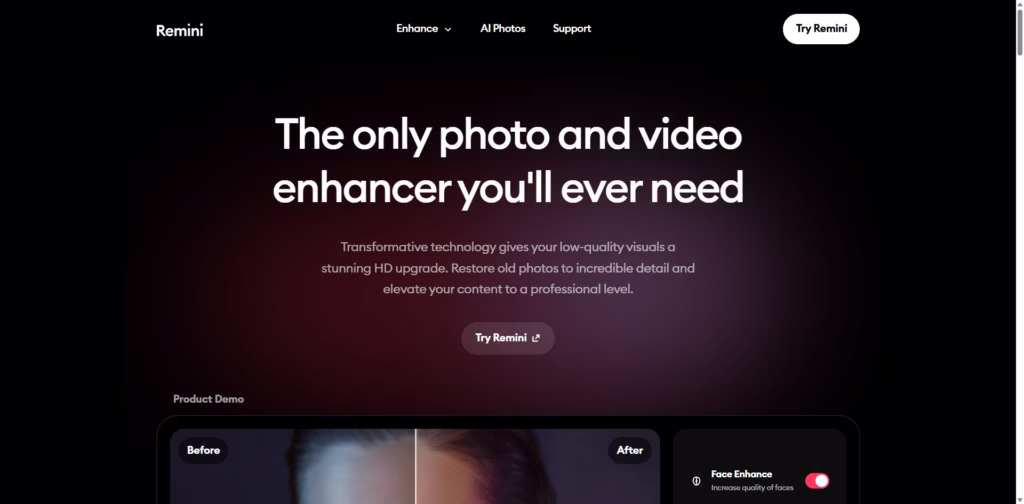 AI Video EnhancerRemini is an AI-powered photo and video enhancer that transforms low-quality visuals into stunning HD images.