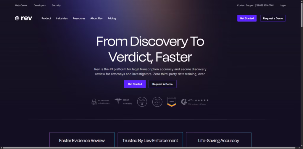 Rev AI combines speed, accuracy, and security to transform legal transcription and evidence review.