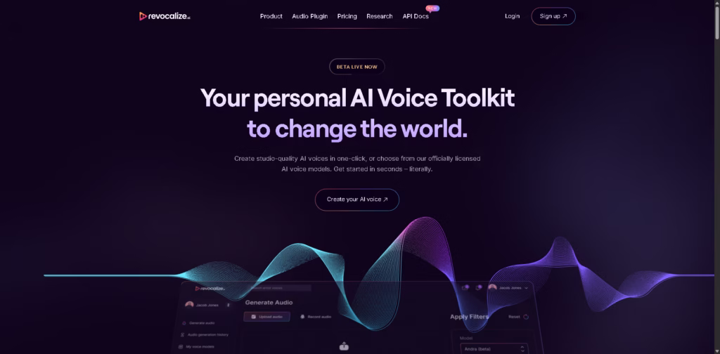 Revocalize AI is a cutting-edge AI voice toolkit that lets you create hyper-realistic, studio-quality voices and vocal tracks in seconds.