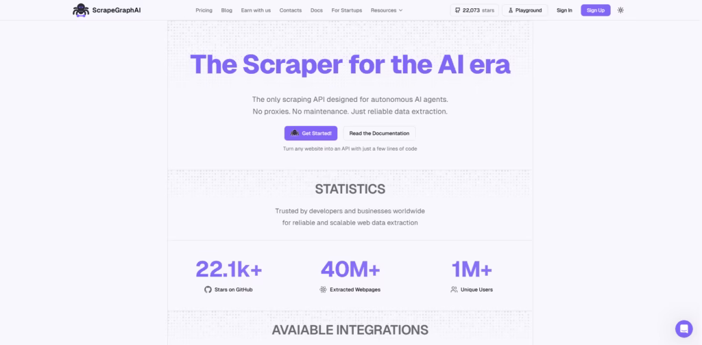 ScrapeGraphAI is an AI-powered web scraping platform designed for the modern AI era.