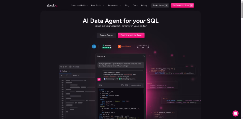 Sherloq is an AI-powered SQL assistant that lives in your editor and helps you organize, version, and interact with your SQL queries.