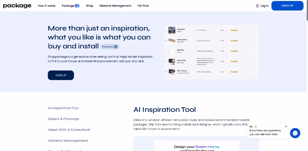 Shoppackage is an AI-powered interior design and material management tool that turns your renovation inspiration into actionable, shoppable plans.