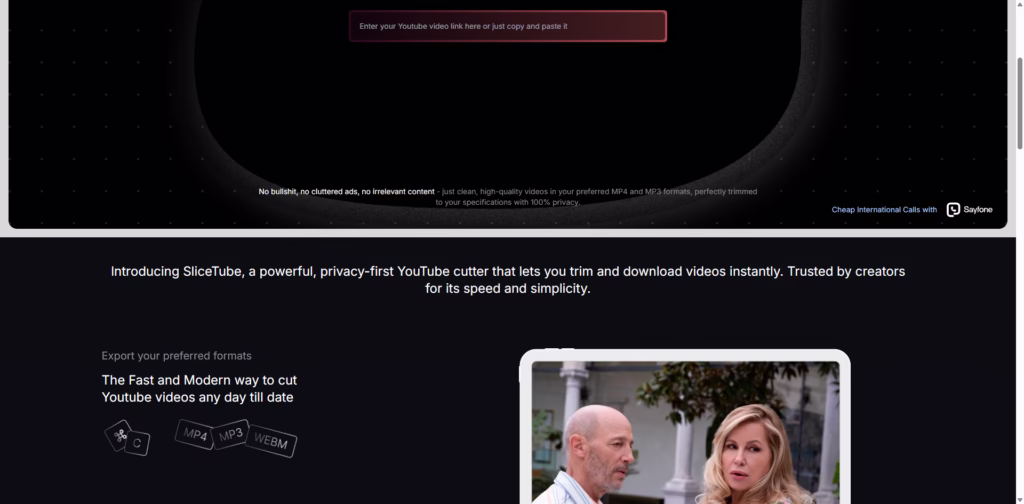 SliceTube is a fast, modern YouTube cutter and downloader that lets you trim videos and save them instantly in MP4, MP3, or WEBM formats.