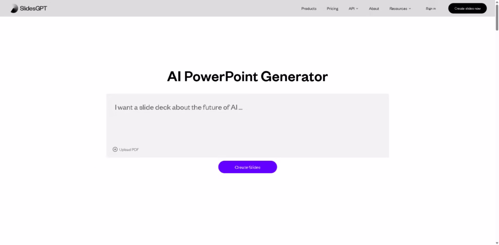 SlidesGPT is an AI-powered presentation maker that turns simple text, PDFs, or prompts into ready-to-use slide decks in minutes.