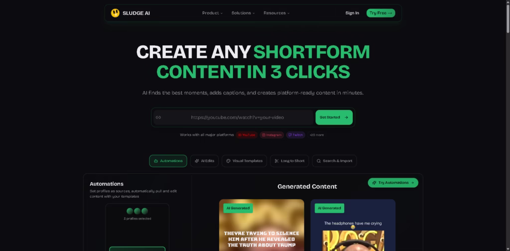 Sludge AI is an AI-powered platform designed for content creators, curators, and social media managers. It transforms long-form video content into short, engaging, platform-ready clips automatically.