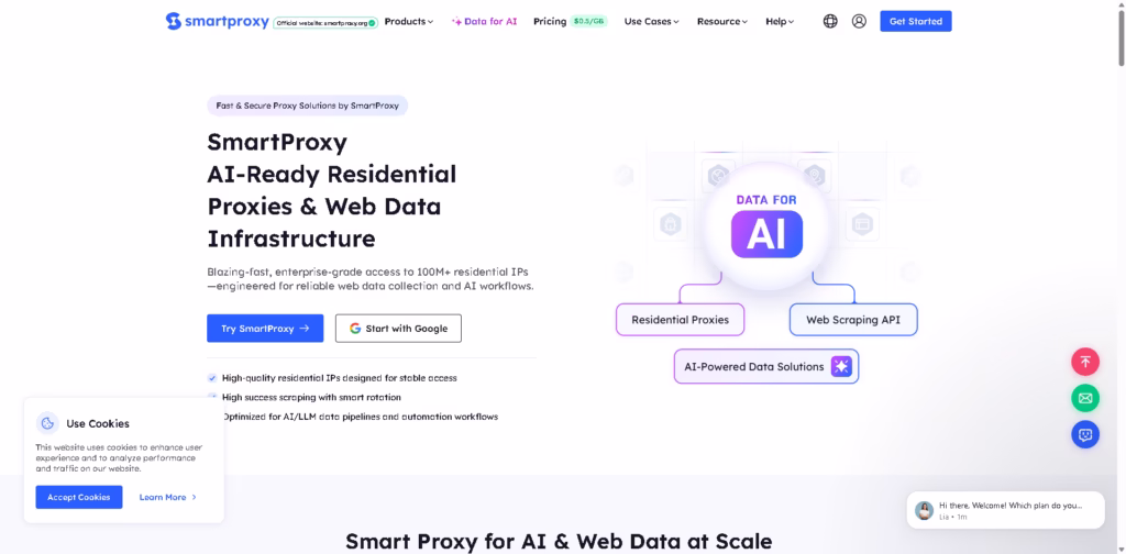 SmartProxy is a high-performance proxy service designed to provide fast, secure, and reliable access to residential and data center IPs worldwide.