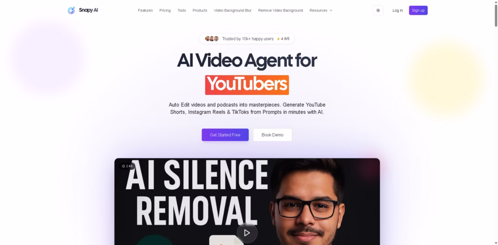 Snapy AI is built for speed and simplicity. Instead of spending hours editing, you can generate polished videos in minutes using AI. Its biggest strength is content repurposing, turning long-form content into multiple short clips ready for social media.