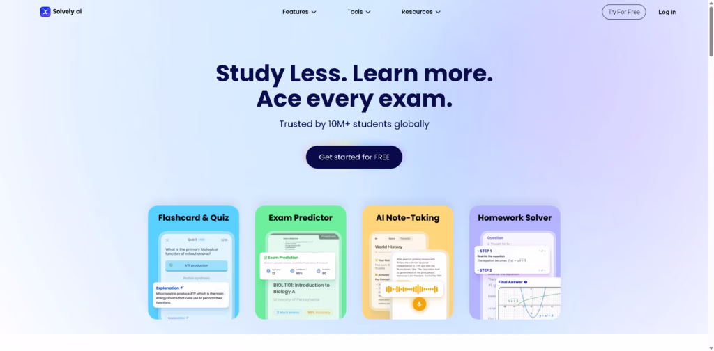 If you want to study smarter, understand tough subjects, and prepare for exams faster-without feeling lost-Solvely is worth trying. Start for free and see how much easier studying can be.