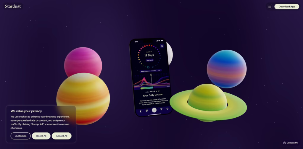 Stardust App is a fun, interactive, and insightful tool for anyone looking to better understand their body and hormonal patterns.