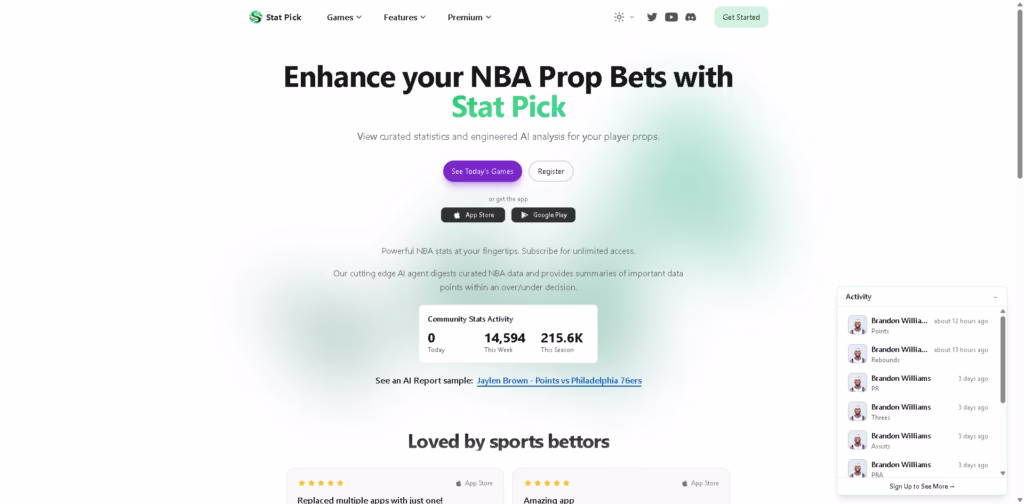 - Activity Feed: Stay updated on popular games, props, and AI-powered trends.