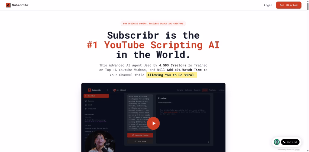 Subscribr is a YouTube scripting AI designed to help creators, faceless brands, and business owners generate high-performing video scripts quickly.