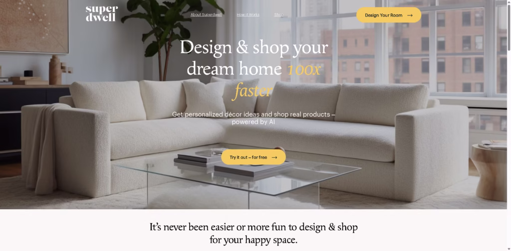 Superdwell AI is an intuitive online interior design tool that lets you design and shop for your dream home faster than ever.