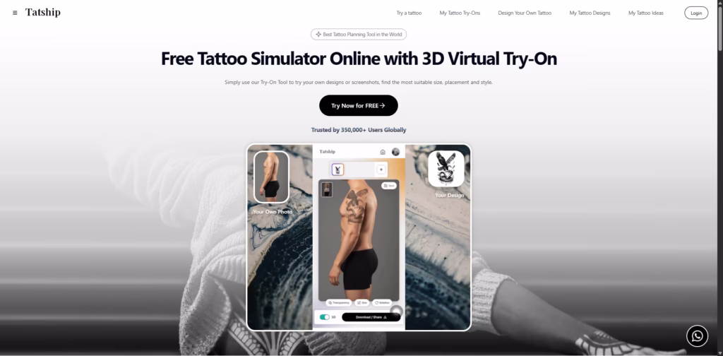 Tatship is a free AI-powered tattoo planning and virtual try-on tool that helps you preview tattoos on your own body before making them permanent.