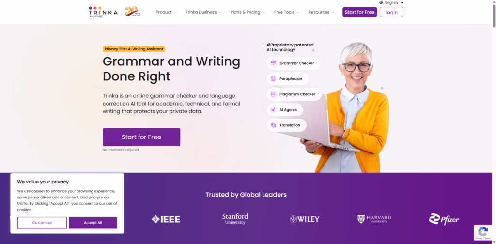 If writing quality and confidentiality matter to you, Trinka AI is worth starting with its free plan and scaling as needed.