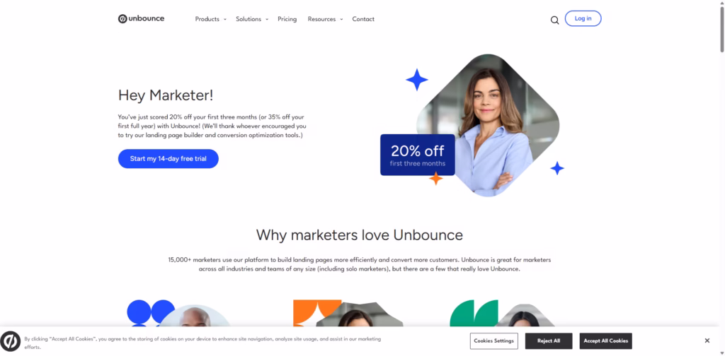 Unbounce makes landing page creation, testing, and optimization effortless. Whether you’re a solo marketer, an agency, or a SaaS business, it provides the tools to boost conversions and streamline campaigns.
