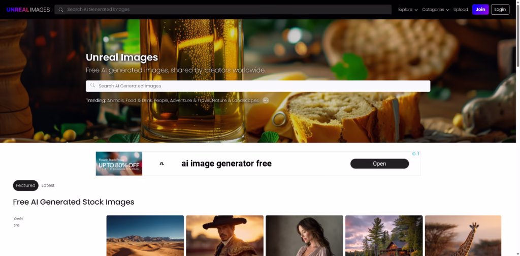 Unreal Images is a free platform offering AI-generated stock photos and visuals created by artists worldwide.