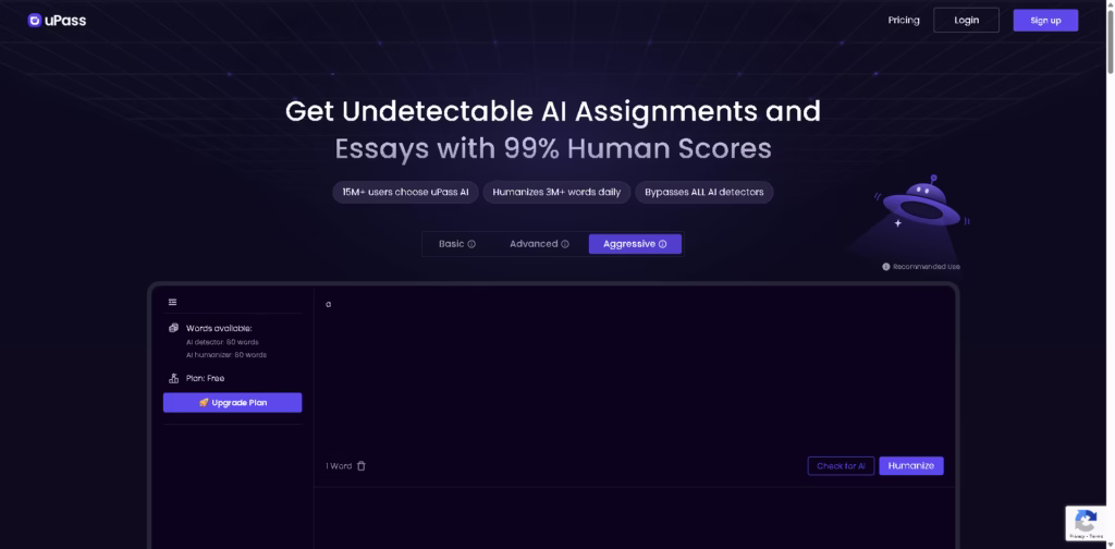 uPass AI is a free AI-powered tool designed to make assignments, essays, and papers undetectable by AI detectors while keeping content clear, readable, and plagiarism-free.