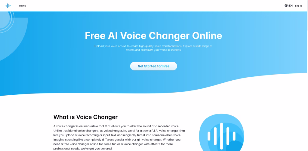 voicechanger.im is an AI-powered free voice changer that lets you transform your voice from recordings or text into completely new voices.