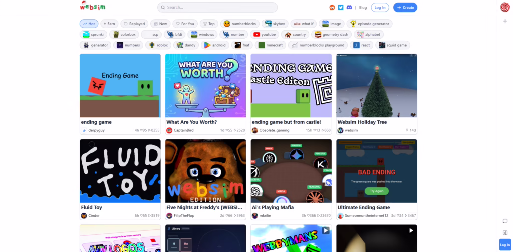 - Wide Asset Library: Simulations span games, AI characters, generators, visual toys, fandoms, and experiments.