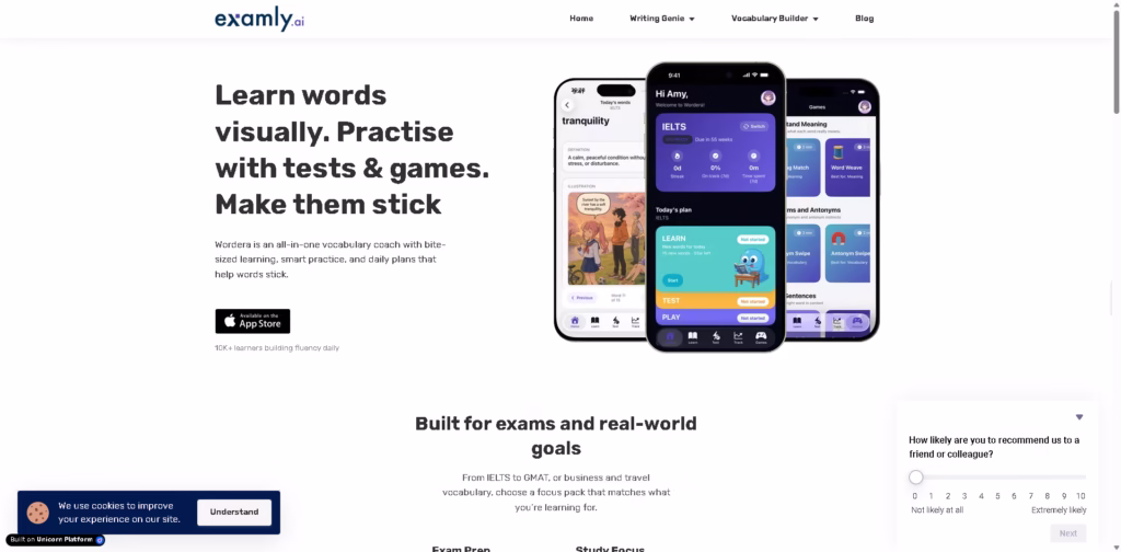 Wordera makes vocabulary learning visual, interactive, and goal-driven. Whether you’re prepping for exams or simply want to expand your word power, its mix of games, adaptive tests, and daily streaks that keeps learning fun and effective.